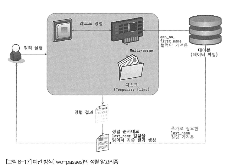 - 정렬해야할 데이터가 sort_buffer_size를 넘는 경우
