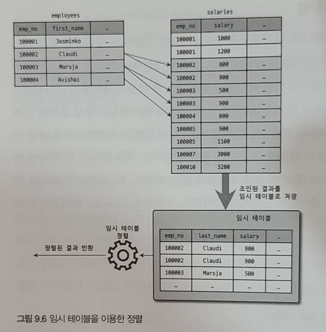 사용자가 ‘CREATE TEMPORARY TABLE …’로 만든 임시 테이블과는 달리 MySQL 서버가 내부 처리를 위해 임시 테이블을 생성할 수 있다.